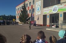 Бәйрәм линейкасында беренче тапкыр Россия флагын күтәрү һәм ил гимнын башкару тантанасы узды. Менә шундый тантаналы рәвештә укучыларның һәр яңа уку атнасы башланачак.