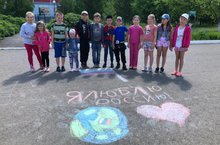 Сегодня дети пришкольного лагеря «Радуга» поучаствовали в акциях, посвящённых дню России «Лица России», «Россия рисует».