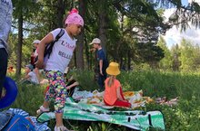 Сегодня дети пришкольного лагеря «Радуга» ходили в поход. Прогулка от гимназии до заячьей поляны прошла быстро. Дети расположились на лужайке, растопили покрывала и стали отдыхать. Активные игры с мячом, скакалки, бадминтон, все это отлично подходит для активного отдыха на природе. Широкое раздолье, прекрасный вид на Волгу и Казань, воздух от берёз, сосен, лиственниц, ну просто красота! Поход запомнится нам надолго!