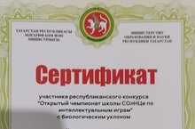 Гимназия укучылары, Прозорова Елизавета һәм Громова Полина биологик тайпылышлы "Интеллектуаль уеннар буенча мәктәпнең ачык чемпионаты" республика конкурсында катнашты. Чарада 14 команда ярышты. Конкурста катнашкан өчен барлык катнашучыларга истәлекле сертификатлар тапшырылды