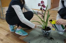 Юные цветоводы из 6 класса продолжают ухаживать за цветами и сажают новые. Сегодня мы посадили мильтонию методом перевалки. Скоро 8 Марта. Пусть вокруг нас все цветет и благоухает!