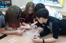 7нче б сыйныфында"Көзге калейдоскоп"интеллектуаль уены үткәрелде. Уенда ике команда катнашты, алар бер-берсе белән ярышырга тиеш иде.Уенда катнашучыларга әдәбият, сәнгать өлкәсендә белемнәрен күрсәтергә, стандарт булмаган сорауларга җавап бирергә, иҗади биремнәр үтәргә кирәк иде. Уен тәмамланганнан соң, нәтиҗәләр ясалды һәм ике команда да призлар белән бүләкләнде.