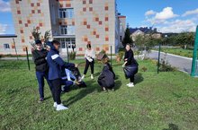Генеральная уборка перед днём рождения гимназии затронула не только кабинеты, но и пришкольную территорию. Ученики были заняты очищением газонов и облагораживанием территории!