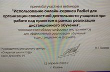 Дистанцион укытуны оештыру өчен яңа онлайн-сервислар үзләштереп, гимназия укытучылары үзләренең һөнәри дәрәҗәсен вебинарларда күтәрәләр. "Ачык мәктәп" платформасы тарафыннан оештырылган вебинарлар яңа белем бирү технологияләрен үзләштерү, мәгълүмати дәрәҗәне күтәрү мөмкинлеге бирә, укытучыларга укучылар белән бергә барырга ярдәм итә.