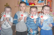 Здравствуй, праздник!Праздник мальчиков и пап!Всех военных поздравляетНаш веселый детский сад! -