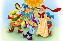 Встанем утром рано,Напечём блиновС творогом, сметаной,С мёдом. Будь здоров!С маслом и вареньем,Вот Вам угощенье!Масленицу встретим.Чучело сожжём.Праздник мы отметим.Радость – в каждый дом!Яркий лучик солнца -Каждому в оконце! -
