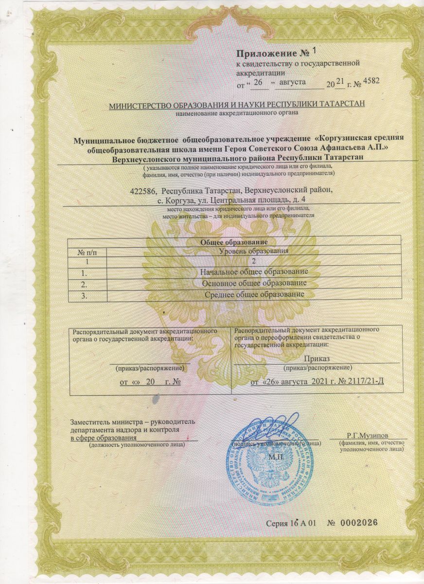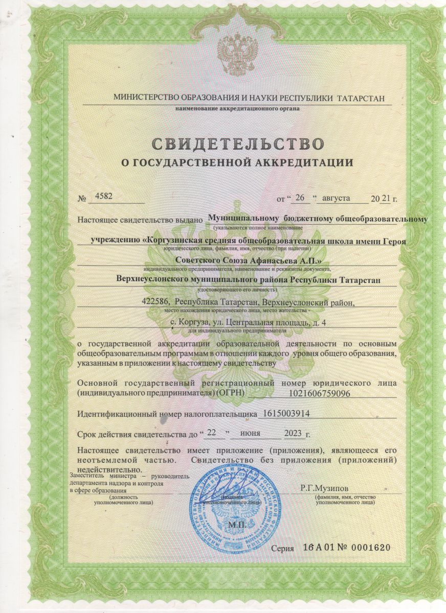 Муниципальное бюджетное общеобразовательное учреждение "Коргузинская средняя общеобразовательная школа имени Героя Советского Союза Афанасьева А.П." Верхнеуслонского муниципального района Республики Татарстан