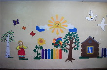 В МБДОУ «Кураловский детский сад» продолжается оформление игровых комнат и лестничных проёмов. Творческий потенциал педагогов вплотную занимается решением данного вопроса.