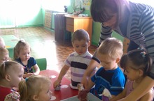 Малыши МБДОУ «Кураловский детский сад» уже имеют представление о нескольких геометрических фигурах. Они различают круг, квадрат и треугольник.