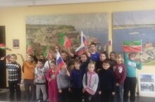 Советник по воспитанию Лужаева Наталья Викторовна провела с ребятами интерактивную игру «Путешествие по России», в ходе которой они познакомились с традициями 12 национальностей, проживающих на территории России. Посмотрели видео о заслугах Минина и Пожарского. После мероприятия все дружно отправились в сельский дом культуры на киносеанс мультипликационного фильма «Царство против разбойников».