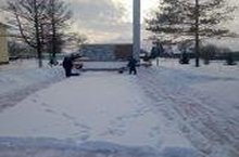 Отряд юнармейцев из МБОУ «Кураловская СОШ» от снега очистили памятники. Юнармейцлар отряды һәйкәлләрне кардан чистарттылар. 09.01.2018
