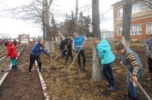 Наша школа не стала исключением. 22 апреля учащиеся 7-8 классов вместе с классными руководителями вышли на уборку территории возле клуба. Именно здесь и будут проходить торжественные мероприятия.