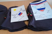 Технология укытучысы Корнева Г. Г.һәм мәктәп укучыларының әнисе Баранова Алина 30 балаклав тегеп куйдылар. Тукыманы Делова Рәисә Михайловна педагогик хезмәт ветераны гаиләсе акчасына сатып алган. Балаклавалар белән бергә безнең мәктәп укучыларының рәсемнәре һәм хатлары да тапшырылачак. -