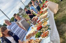 С самого утра в школьной столовой учителя и повара готовили угощение для праздничного стола: маринованные овощи, бутерброды, пироги, компот и т.д. Директор школы Маслов Георгий Георгиевич приготовил фирменную уху, которая особенно понравилась гостям и жителям села.