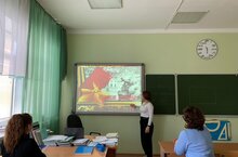 Ольга и Артур рассказали о первом директоре школы Вишневецком Владимире Николаевиче, ушедшем на войну. Упомянули об учителях начальных классов Петропавловской Анне Григорьевне и Родионовой Ксении Ивановне, которые добровольцами отправились на фронт. Ребята узнали о Рахимове Шавкате Каримовиче, директоре школы (1958-1966), который отправился защищать Родину в 1942 году будучи 17-летним юношей, об учителе Слепове Петре Дмитриевиче, совершившим подвиг.