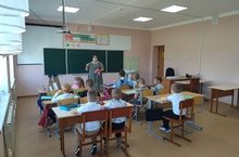 На первом занятии учитель начальных классов Лужаева Наталья Викторовна познакомила детей со школой и правилами поведения в классе. Ребята узнали, как правильно сидеть за партой, задавать вопросы учителю, класть перед собой тетрадь.