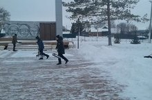 Акция по очистке памятника от снега «Снежный десант». Һәйкәлне кардан чистарту буенча «Кар десанты»акциясе. 13.01.2020