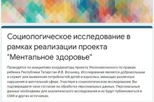 В целях выявления потребностей детей и взрослых, имеющих различные нарушения в ментальной сфере, по инициативе координатора проекта Уполномоченного по правам ребенка Республики Татарстан И.В. Волынец организовано социологическое исследование в рамках реализации проекта «Ментальное здоровье». Исследование является добровольным и принять участие в нем можно до 15 марта т.г.