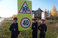 Юнармейцы МБОУ «Матюшинская СОШ» установили дорожные знаки на дороге, ведущей к школе. Знаки необходимы для обеспечения безопасности на маршруте движения «школа-дом». Знак « Осторожно, дети!» предупреждает автолюбителей о возможном появлении детей на данном участке дороги и устанавливается вблизи школ и других детских учреждений. Второй знак предупреждает об ограничении скорости до 40км/ч.