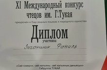 Среди чтецов был ученик и из нашей школы. Ученик 7 класса Зиганшин Фаниль принял участие в данном конкурсе и достойно выступил. Фаниль награжден Дипломом участника. Мы его поздравляем и пожелаем дальнейших успехов!