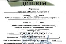 В конкурсе приняли активное участие учащаяся нашей школы Байгазина Алина (3 класс), учитель начальных классов Гузельбаева Лилия.Заняла призовое 3 место в секции «Будет деревня, буду я!» Токарева Вилада, учащаяся 7 класса (руководитель, учитель истории Токарев А.В.)