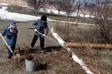 В солнечный вессений день воспитанники старшей группы вместе с воспитателем провели мини-субботник.