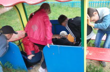 Этот день был посвящен коллективным мероприятиям. С утра команды получили задания подготовиться к Дню отряда: разучить песни, стихи, танцы, а главное провести коллективную игру. Творчеству детей не было предела. Кто-то учит стихотворение, кто-то поёт, танцует. В это время в гости к ребятам заглянули Казаки-разбойники. (помощники вожатых).
