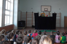 С большим вниманием сегодня смотрели кукольный спектакль «Приключения колобка» учащиеся начальных классов и детского сада.