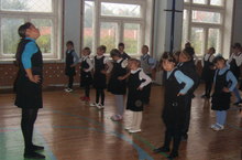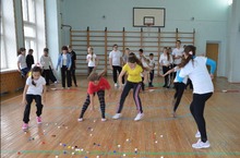 Учащиеся 1-3 классов вместе со своим наставником Черновой В. ученицей 6 класса в течение 5 минут выполняют комплекс упражнений (потягиваются, сгибаются, прыгают и машут руками и ногами), и день начинается с радостных эмоций, организм быстро и легко просыпается, и все с хорошим настроением отправляются на учёбу.