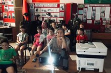 Далее, в военной комнате музея, ребята узнали некоторые факты истории о первом дне войны, например, что первыми, кто принял на себя натиск фашистов, были бойцы пограничных застав. Короткий видеоролик наглядно показал ребятам, как Гитлеровская Германия, вероломно напав на нашу Родину, приступила к осуществлению своей чудовищной цели: уничтожить наше государство, истребить миллионы людей. Символом беспримерного мужества советского народа стал легендарный подвиг защитников Брестской крепости. С большим интересом дети смотрели видеофильм "Чтобы помнили…", где познакомились с местными односельчанами, которые воевали в Великой Отечественной войне, многие из них пропали без вести, многие погибли и только третья часть вернулись домой.