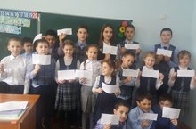 В день российской космонавтики библиотекарь МБОУ « Набережно-Морквашская СОШ» Прохорова И.Р. и учитель начальных классов Тулаева Я.О. провели с учащимися 2-4 классов познавательную презентацию к 85-летию Ю.А. Гагарина «Сияет над миром улыбка Гагарина» и викторину о космосе «Удивительный мир космоса».