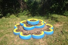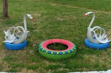 Отслужившие свое старые покрышки могут стать отличным материалом для оформления цветника на прилегающей территории к ДОУ. При этом можно делать как очень красивые клумбы из покрышек, так и различные вазоны, в которых вы будете выращивать цветы и пряные травы. Именно этим и занимался коллектив детского сада. В результате получилась интересная , красивая клумба – лебедь.