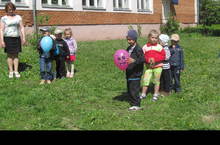 "Укрепляем здоровье" 14.06.2013 В МБДОУ "Нижнеуслонском детском саду" воспитатель Ольга Сутулова проводит не только зарядку, но и подвижные занятия на свежем воздухе.