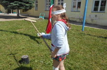 Соревновались в беге с ведёрками, стараясь не пролить ни капельки.