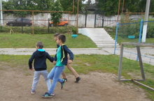 Вернулись на территорию лагеря – поиграем в футбол! Голубой день закончен. Впереди синий. До утра, любимый лагерь!