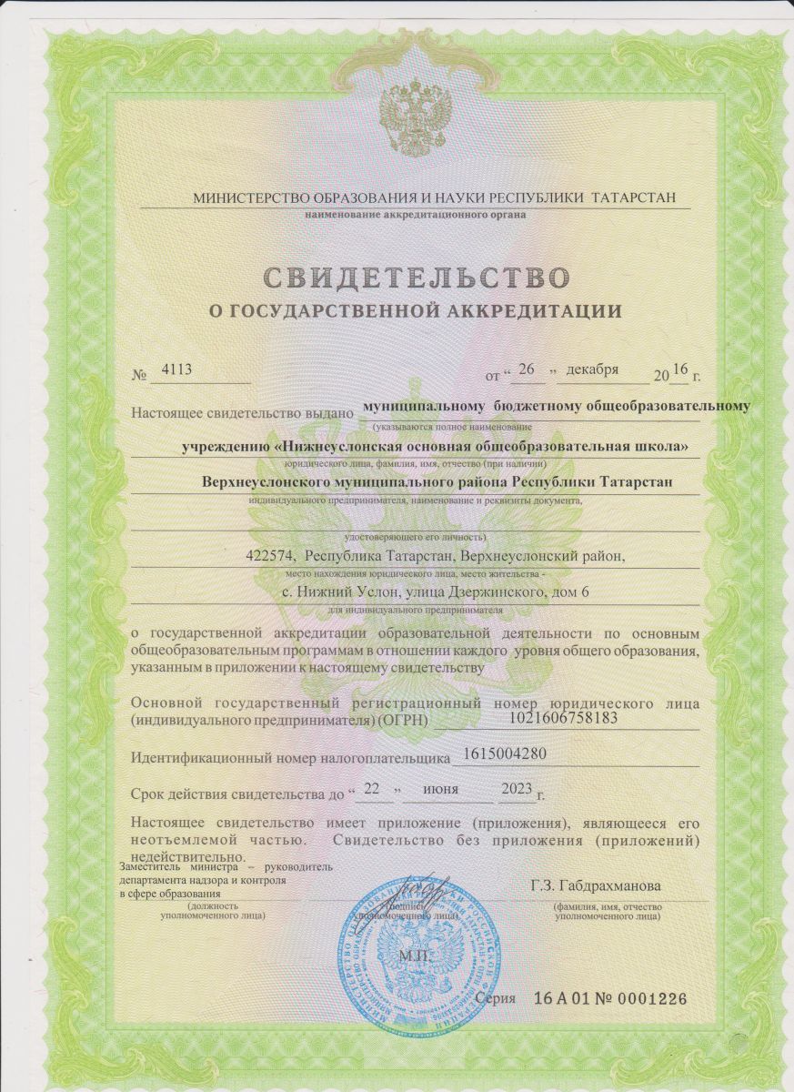 МБОУ «Нижнеуслонская основная общеобразовательная школа Верхнеуслонского муниципального района Республики Татарстан"