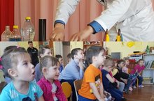 На днях МБДОУ «Октябрьский детский сад» посетили артисты с программой «Научное шоу профессора Гринса».