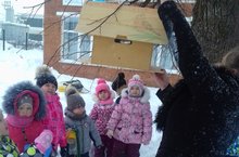 Сегодня, 18 января воспитанники МБДОУ «Октябрьский детский сад» выйдя на прогулку вместе с воспитателем, повесили кормушку для птиц.