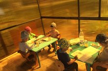 В тени ветвей могучих древ, как на сказочном островке, раскинулась прохладная закрытая беседка в МБДОУ «Октябрьский детский сад».