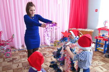 МБДОУ «Октябрьский детский сад» преобразился в эти морозные декабрьские дни. Он украшен новогодними гирляндами, золотистым дождиком.