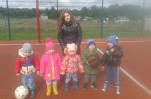 Сегодня,4 октября, в погожий осенний денек, воспитанники младшей группы побывали на спортивной площадке.