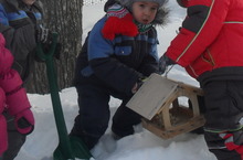 В МБДОУ «Октябрьский детский сад» воспитатель О.Г.Картапова со своими малышами во время прогулки развесили кормушки для птиц.