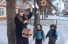 В МБДОУ «Октябрьский детский сад» 15января воспитатель Ольга Картапова вместе со своими малышами, во время прогулки развесили на деревья кормушки для птиц.