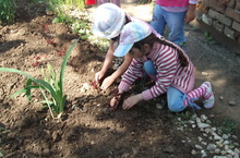 Вчера на прогулке воспитанники МБДОУ «Октябрьский детский сад», вместе с воспитателями Ольгой Картаповой и Лилией Абызовой помогали озеленять участок.