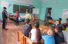 В МБОУ "Октябрьская СОШ" вожатые ДОО "Родник"каждую перемену проводят различные игры с ученика начальных классов.