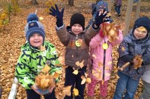 Осенняя пора связана с листопадом. Грустно, конечно, но что поделаешь? Зато скоро зима!!! А сейчас надо убирать листву. Воспитанники старшей группы практически каждый день на прогулке убирают листья на участке. А труд на свежем воздухе, когда убираешь ярко окрашенную опавшую листву, превращается в радость. Сочные оттенки красного, желтого цветов поднимают настроение, и уборка превращается в развлечение. Ветер подхватывает листочки, унося с собой. А дети пытаются поймать их, словно играют в салки с ветром. Загляденье! А вы пробовали взять охапку листьев и подбросить вверх, купаться под золотым дождем? Не просто труд, а праздник.