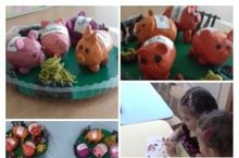 Сегодня 5. 07.2017г в дождливый день ребята средней группы МБДОУ Верхнеуслонский детский сад " Солнышко" мастерили из капсул от шоколада "Киндер сюрприз" поросят . Потом всех получившихся зверят мы разместили на приготовленные нами же фермы. Мальчишки и девчонки с большим увлечением мастерили хрюшек! Повторяли и закрепляли приемы работы с пластилином: раскатывание, сплющивание, скручивание и др. На занятиях дети помогали друг другу, делились своими идеями с воспитателями ,которые по возможности тут же воплощались в коллективной работе.