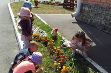 Сегодня воспитанники группы раннего возраста на прогулке наблюдали за цветами на клумбе. Цветущие растения – самый подходящий объект для наблюдений. Ведь цветы не только украшают территорию нашего детского сада, но и доставляют детям радость. Детей удивляет всё: и яркие лепестки цветов, и разнообразной формы листья, и бутоны, и конечно, душистый запах. Во время беседы дети называли, какие цветы знают, как за ними нужно ухаживать: поливать, удалять сорняки, сухие листья. А самое главное – ребята теперь знают, что жизнь цветов недолговечна и их нужно всегда беречь.