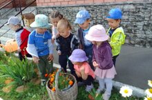 Ребята группы раннего возраста посетили цветочную полянку, где подружились с маленькой пчёлкой. Вместе с пчёлкой детки играли в игру «Посади цветы на клумбу». Пчёлка рассказала ребятам о своих любимых цветах и о том, что рвать цветы просто так нельзя, так как они быстро вянут и превращаются в мусор. Ребята сделали вывод: пусть цветы украшают наши дворы, улицы, мы будем восхищаться красотой цветов, вдыхать их аромат. Цветы нужно беречь! На прогулке ребята совместно с пчёлкой рассмотрели, какие цветы растут на территории нашего детского сада.