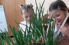 Когда за окном тает снег, а до первой зеленой травки еще долго, так приятно увидеть на подоконнике свежую зелень! Огород на подоконнике в группе является очень интересным занятием, особенно ранней весной, когда хочется не только отведать свежие дары природы, но и посмотреть на цвета зелени. И нет ничего приятнее, когда первая зелень поспевает прямо у ребят на глазах. Это может быть лук. Воспитатели с ребятами старшей группы решили, что вырастить зеленые перья лука будет им по силам. Для этого они взяли землю для овощей и совочками наложили полный ящик. С интересом рассмотрели луковицы. Все ребята старательно с желанием посадили лук. Выращивание на подоконнике лука способствует развитию любознательности и наблюдательности у детей, это помогает лучше познать растительную жизнь. У детей возникает умение радоваться красоте выращиваемых растений, гордиться результатами своего труда. Влияние окружающего мира на развитие ребёнка огромно. Знакомство с бесконечными, постоянно изменяющимися явлениями начинается с первых лет жизни малыша. Явления и объекты природы привлекают детей красотой, яркостью красок, разнообразием. Наблюдая за ними, ребята обогащают свой чувственный опыт, на котором и основывается их дальнейшее творчество. -